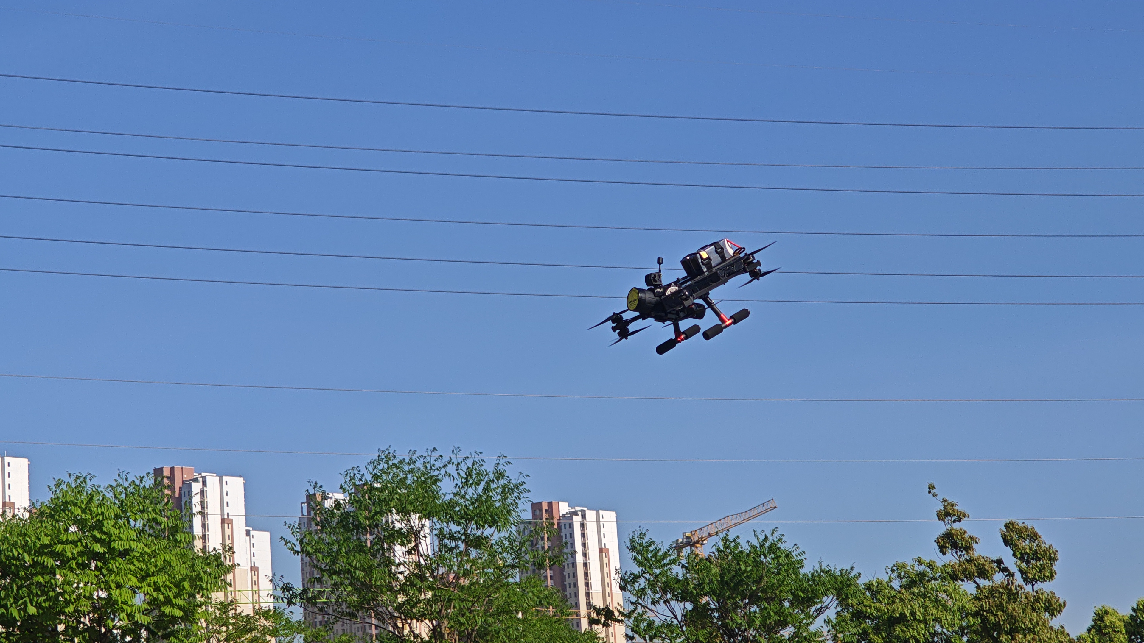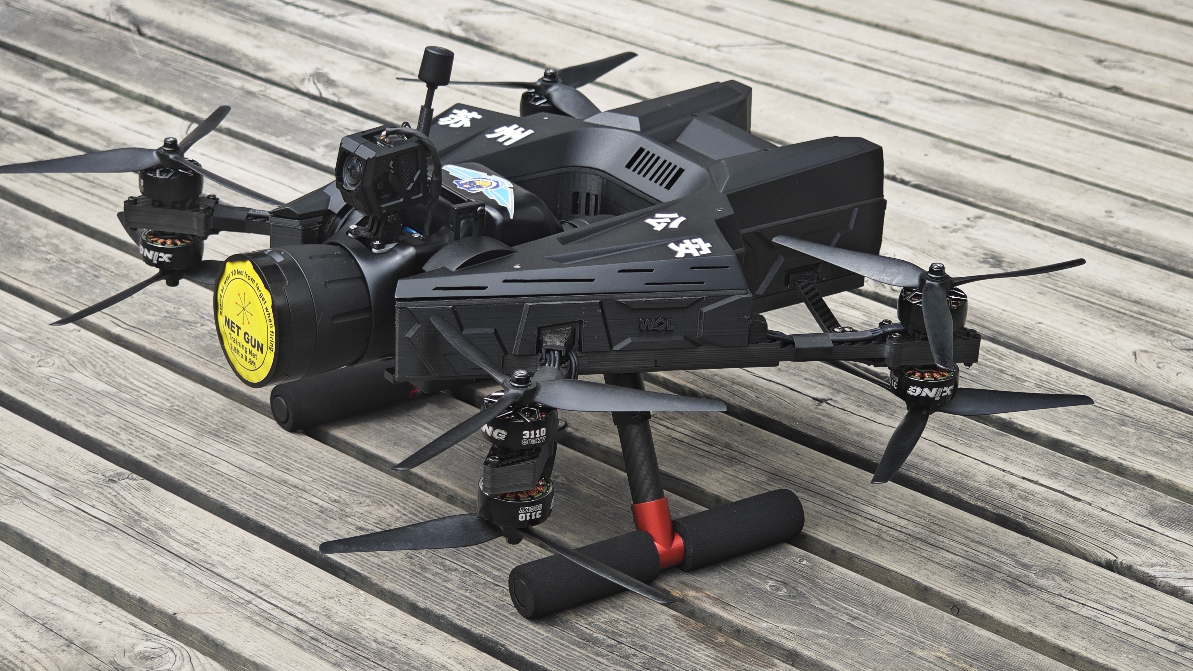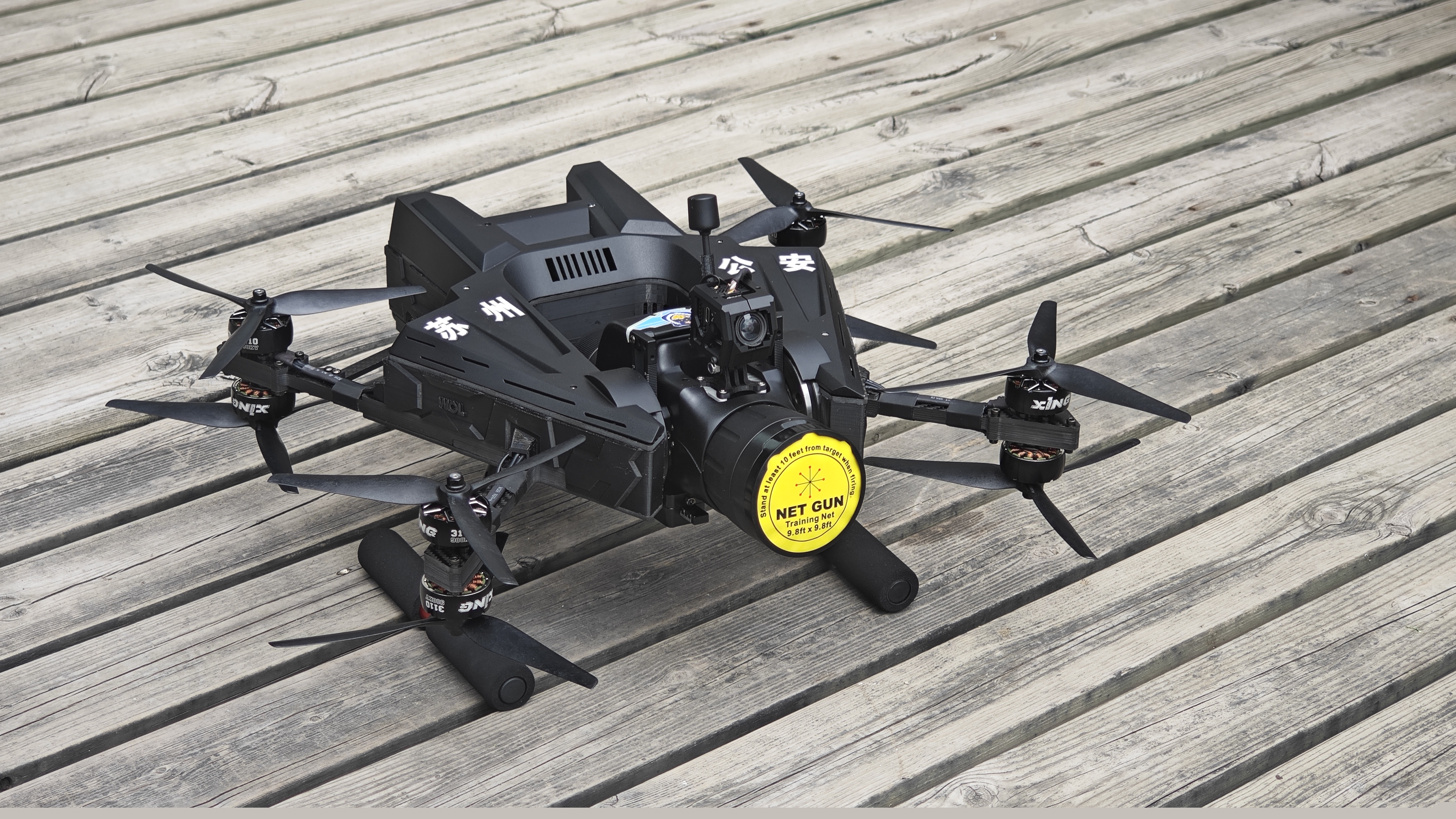 “獵鷹-465”網(wǎng)聯(lián)特種無人機(jī)采用“U”字型設(shè)計(jì),將搭載單軸攝像頭的網(wǎng)槍置于“U”型之中,實(shí)現(xiàn)網(wǎng)槍俯仰角度的自由變化,同時(shí)搭載單軸自穩(wěn)云臺(tái),在穿越機(jī)基礎(chǔ)上改變飛行模式,不管無人機(jī)載機(jī)飛行角度如何,飛得快或慢,單軸網(wǎng)槍與攝像頭始終自穩(wěn)保持一個(gè)固定的角度,除此之外飛手還可以通過飛行遙控器或體感遙控器控制單軸網(wǎng)槍的角度變化,當(dāng)飛手無操作動(dòng)作時(shí)無人機(jī)保持懸停,取航拍無人機(jī)的穩(wěn)定和穿越機(jī)的強(qiáng)勁動(dòng)力的優(yōu)點(diǎn)。大大的提高了飛手在懸停或飛行瞄準(zhǔn)時(shí)無人機(jī)位置的隨意性,同時(shí)對(duì)飛手的操作要求也同步大大降低。