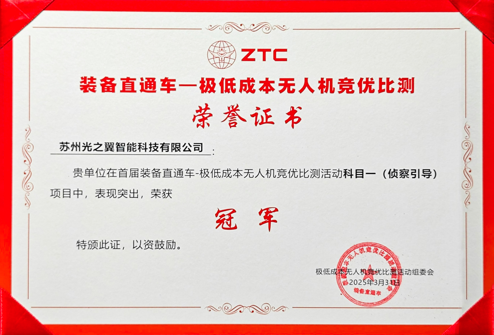 裝備直通車-極低成本無人機競優(yōu)比測科目一冠軍